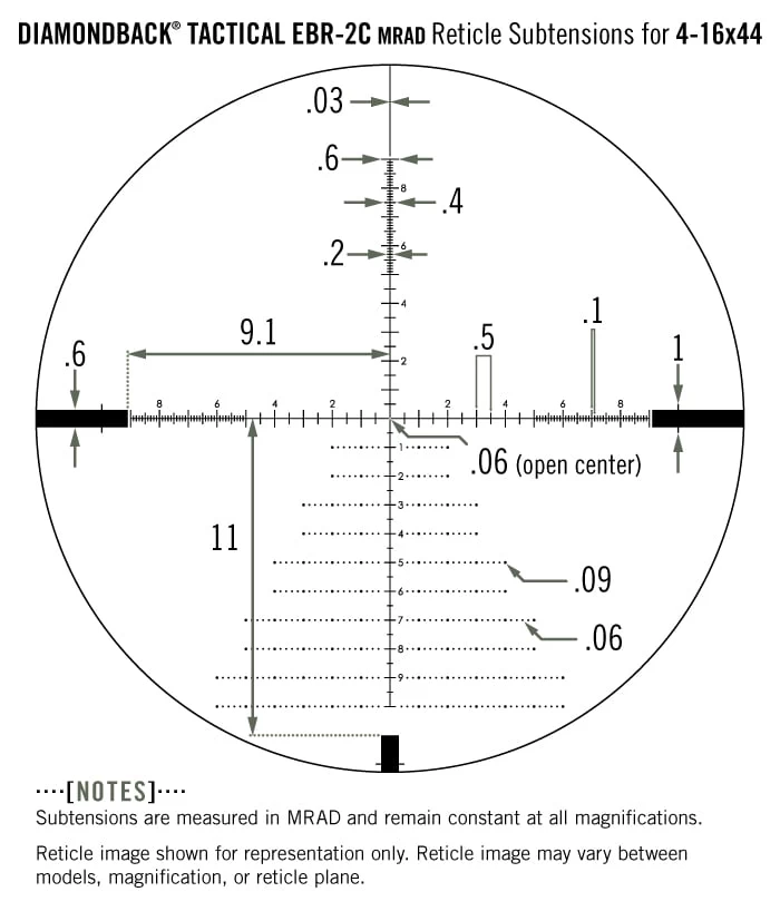 Subtension detail for Diamondback Tactical 4-16×44 FFP